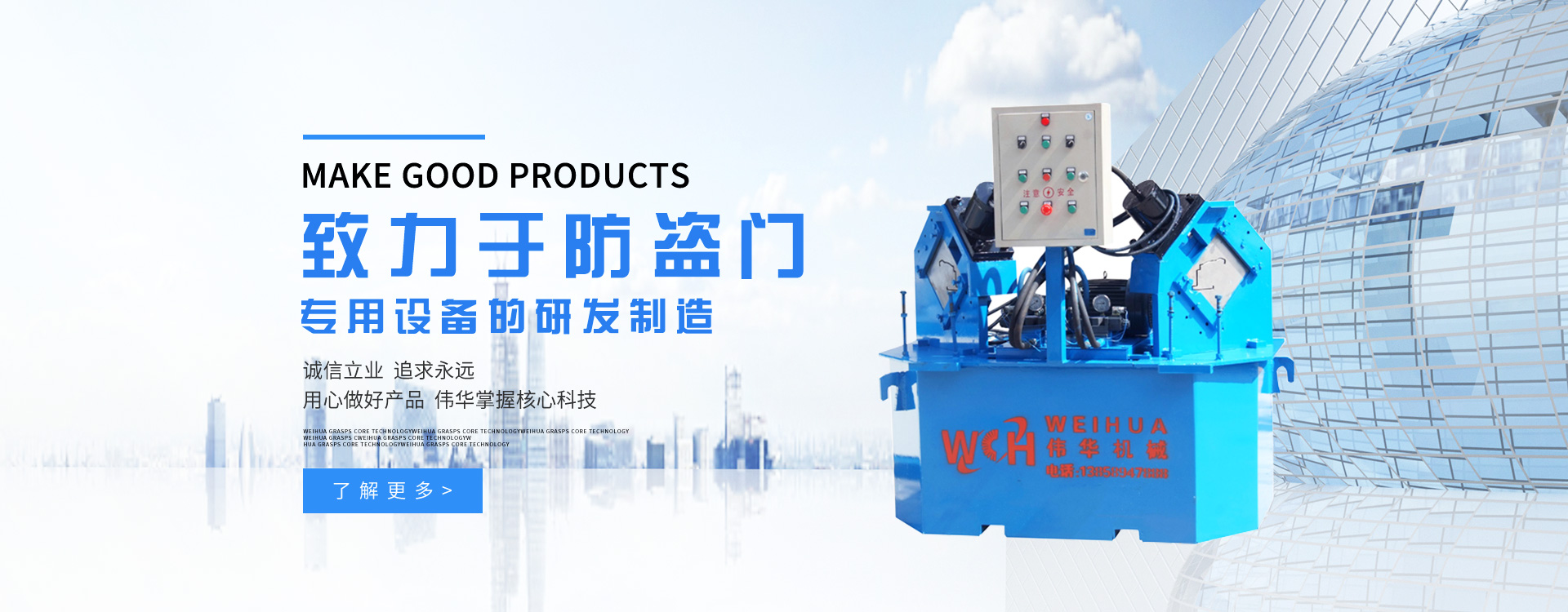 溫州偉華機(jī)械制造有限公司地處浙江溫州瑞安市塘下工業(yè)區(qū),創(chuàng)建于2009年,數(shù)年來全心致力于防盜門專用設(shè)備的研發(fā)制造,主營(yíng)產(chǎn)品有:門面成型機(jī)、門框成型機(jī)、熱壓膠合機(jī)、組合沖床、液壓折邊機(jī)、雙頭沖床、門面開平機(jī)?,F(xiàn)已具備獨(dú)特的管理模式和產(chǎn)品開發(fā)能力,歷經(jīng)多年的努力,現(xiàn)已發(fā)展成為國(guó)內(nèi)最具影響力的機(jī)械設(shè)備企業(yè)之一。